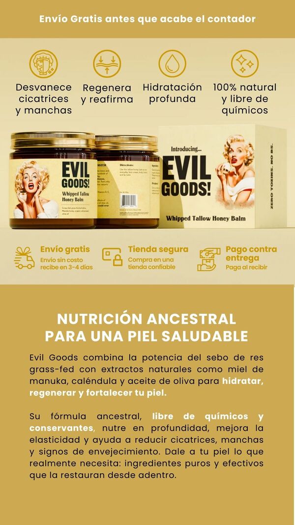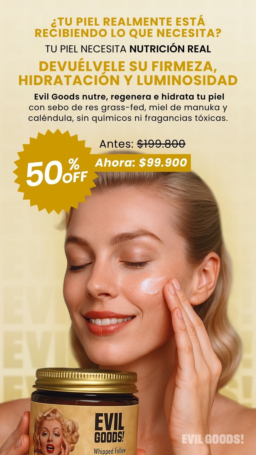 Sí, Evil Goods está formulado con ingredientes 100% naturales y es ideal para todo tipo de piel, incluyendo pieles sensibles. Su combinación de sebo de res, miel de manuka, caléndula y aceite de oliva ayuda a equilibrar la hidratación sin obstruir los poros.
