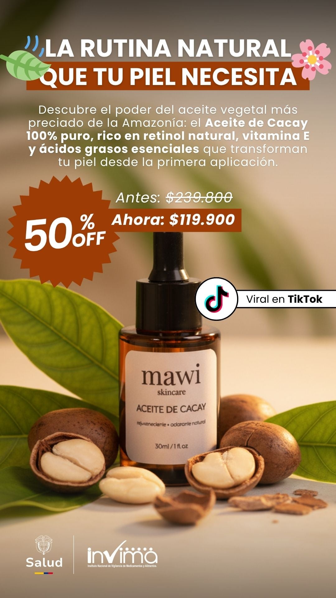 Nuestro aceite de cacay 100% puro proviene de cultivos sostenibles en la Amazonía colombiana, prensado en frío para conservar intactos sus nutrientes, vitaminas y retinol natural.