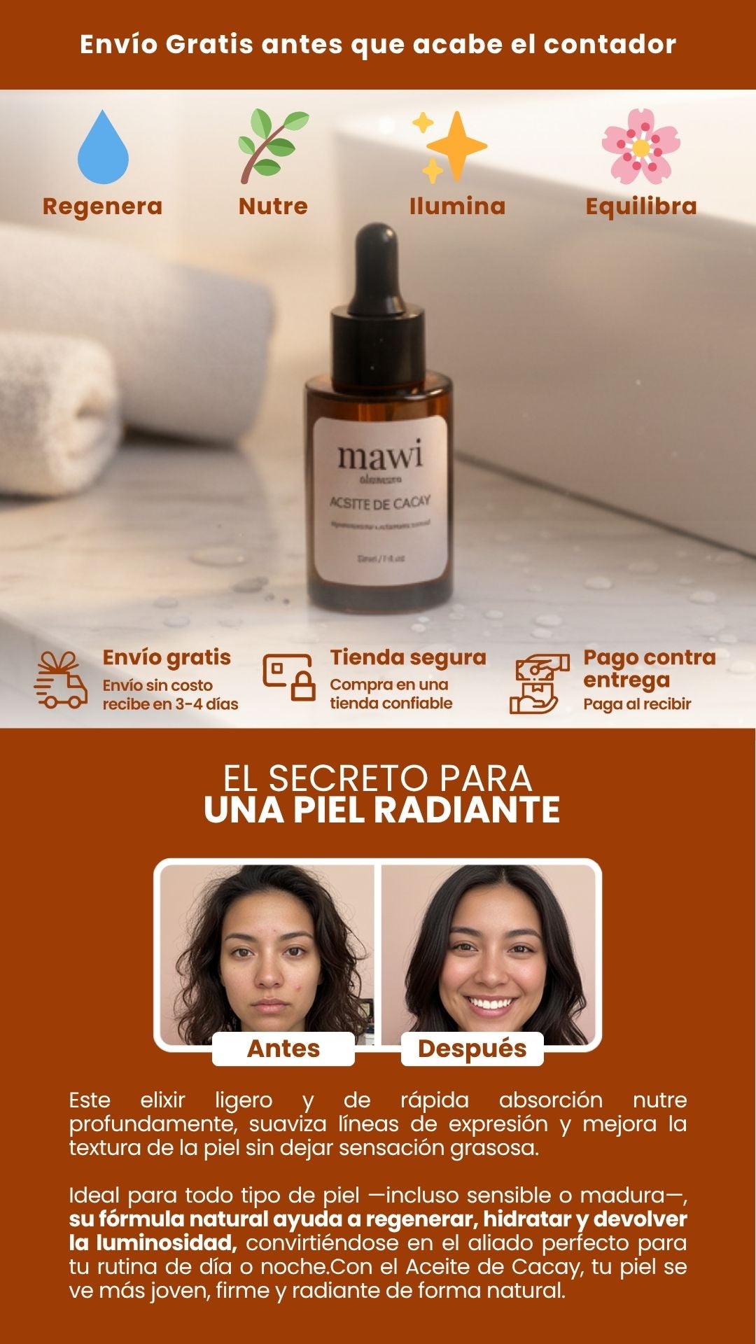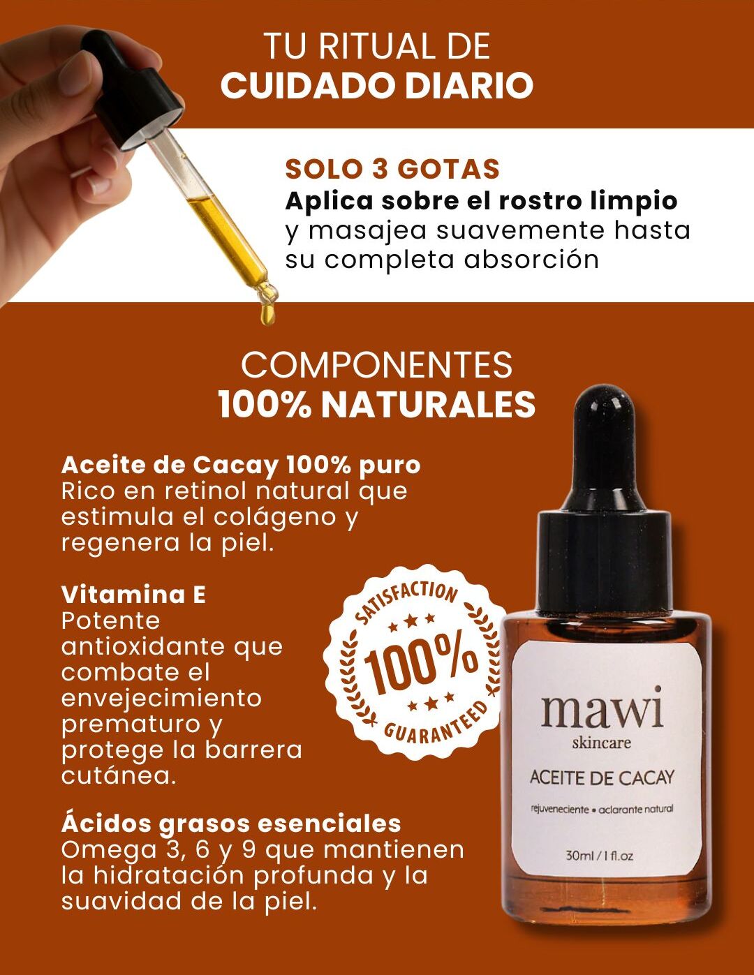 Sí. El aceite de cacay es un aceite seco de rápida absorción, ideal incluso para pieles grasas o sensibles. No obstruye los poros ni deja sensación grasosa.